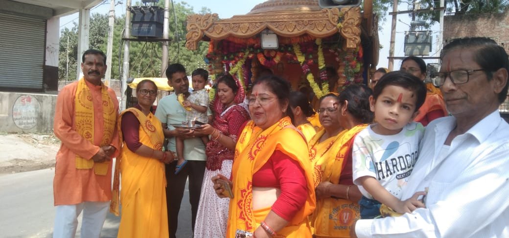 ज्योति कलश पूजन का जगह जगह स्वागत कर आरती उतारी: पुष्प वर्षा