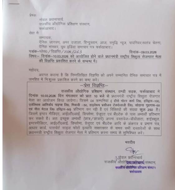 फर्रुखाबाद में रोजगार मेले का आयोजन: 250 रिक्तियां।