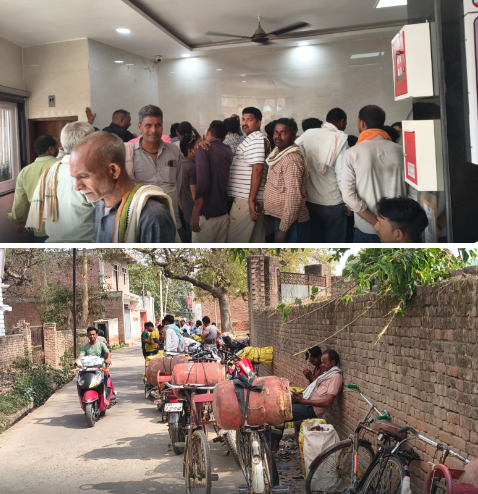 गैस सिलेंडर भरवाने एजेंसियों पर उमड़ी भारी भीड़, लाइन में लगकर अपनी बारी का इन्तज़ार करते उपभोक्ता,