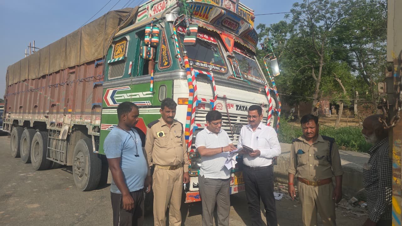 क्षमता से अधिक माल ढोने के अभियोग में 2 ट्रक , बकाया टैक्स में 7 ट्रक सीज व 71 हज़ार जुर्माना वसूला